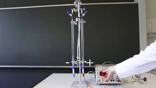 Bei der Elektrolyse von Wasser werden 2 Elektroden, von denen eine mit dem Minuspol und die andere an dem Pluspol einer Gleichspannungsquelle befestigt werden, in ein Wasserbad gegeben. Sobald Strom